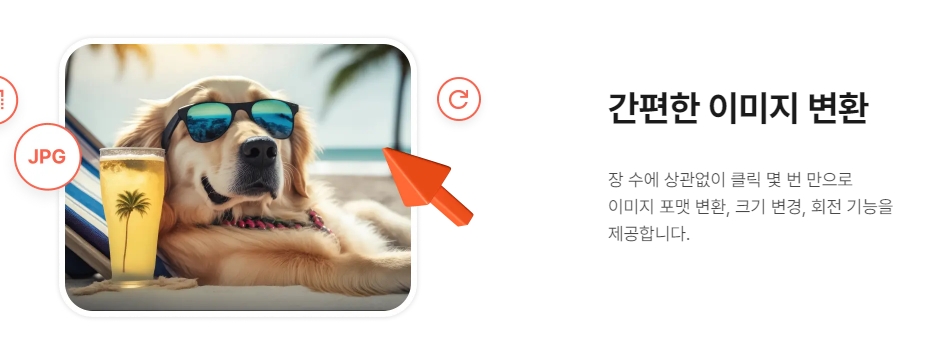 4. 간편한 이미지 변환 기능을 제공하여, 이미지의 포맷 변경, 크기 조정, 회전 등의 작업을 클릭 몇 번으로 손쉽게 수행할 수 있습니다. 복잡한 편집 과정 없이도 빠르게 작업을 완료할 수 있는 점이 특징입니다.