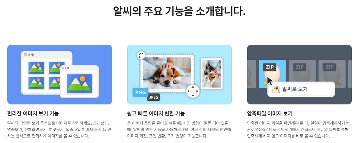8. 주요 기능으로는 편리한 이미지 보기, 쉬운 이미지 변환, 압축 파일 이미지 보기, 꾸미기 및 동영상 만들기 등이 있으며, 알씨는 다양한 상황에서 이미지를 다루는 사용자들에게 유용한 도구로 자리 잡고 있습니다.