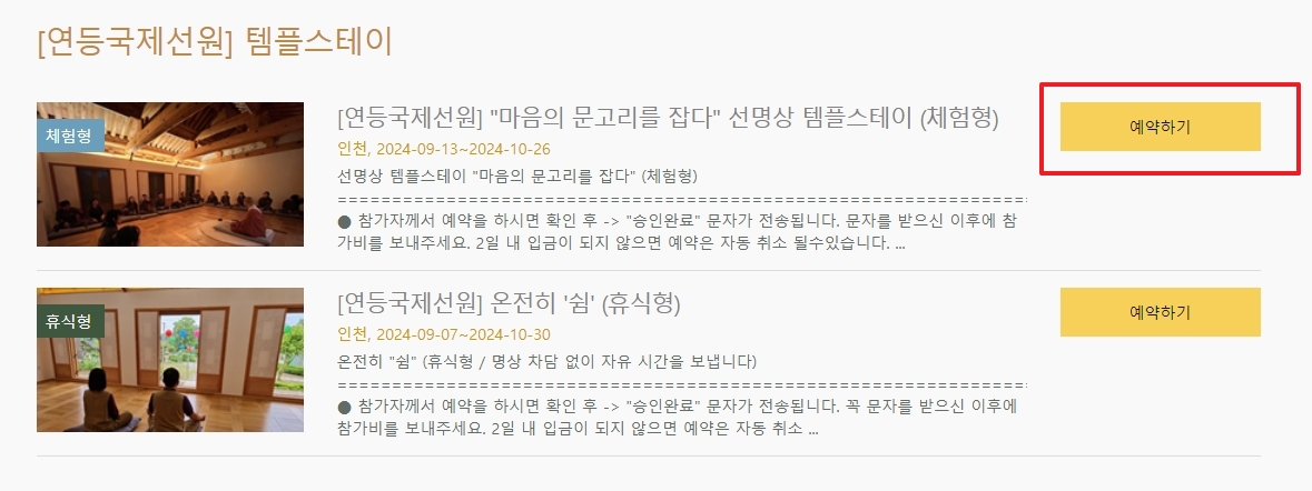 템플스테이 가격