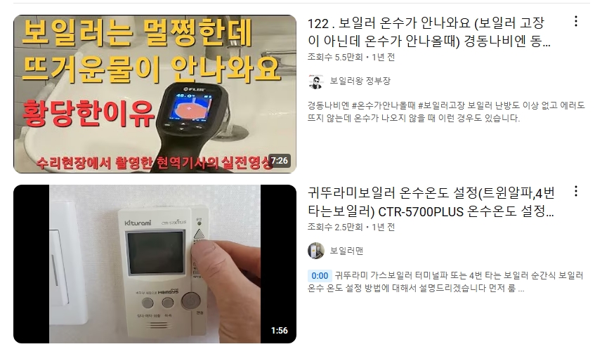 5. ‘보일러 온도 설정법’이나 ‘조절기 고장 체크법’을 다룬 영상들도 꼭 챙겨보세요. 이런 기본적인 설정 오류 때문에 온수가 안 나오는 경우도 꽤 많거든요. 사용자들이 자주 놓치는 포인트를 콕 집어주는 영상이 많아서, 조치 전에 한 번쯤 확인해보시는 걸 추천드립니다.