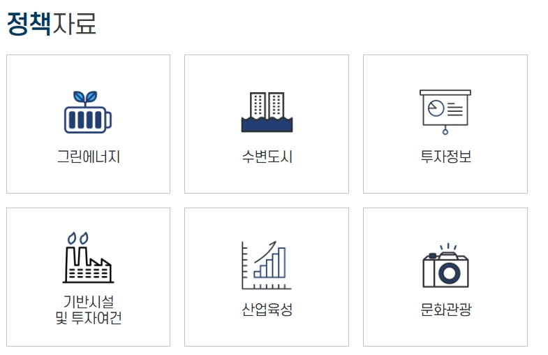 8. 정책 자료실에서는 각종 개발 계획과 사업 관련 자료들을 한 곳에 모아놓았어요. 환경, 산업, 도시계획 등 주제별로 잘 정리돼 있어서, 새만금 전반에 대한 이해도가 쑥쑥 올라갑니다. 공부하듯 보셔도 좋아요.
