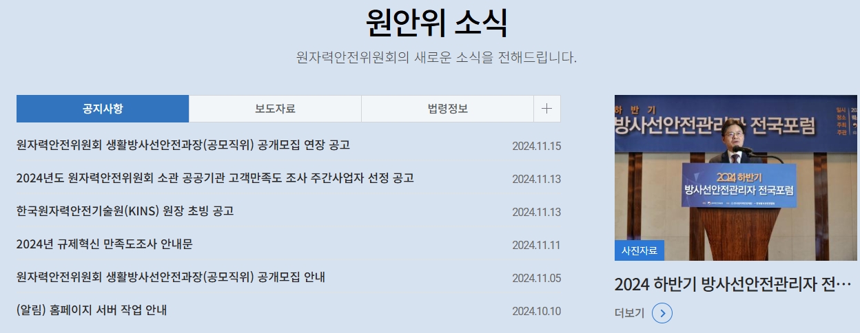 6. 원안위 소식 코너에서는 위원회의 다양한 활동 소식과 공지사항을 확인할 수 있습니다. 새로운 정책 발표나 행사 소식도 올라오니까, 자주 들어가서 어떤 일들이 진행되고 있는지 살펴보는 것도 좋겠네요.