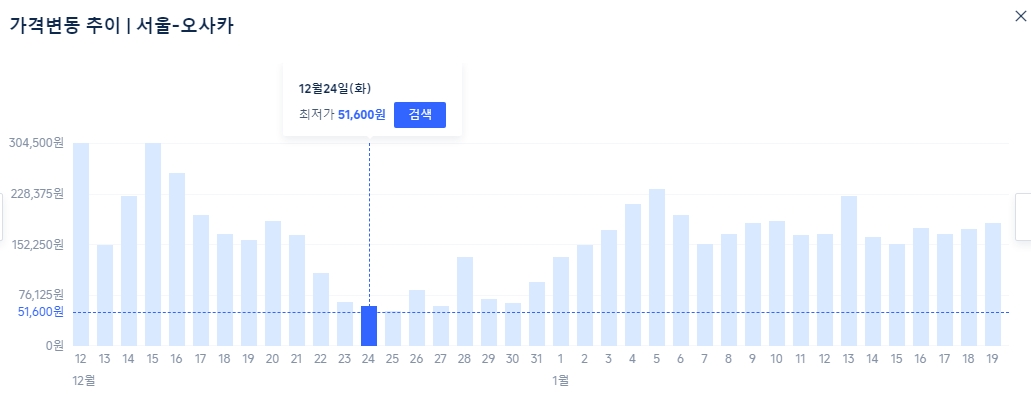 8. 마지막으로, 가격 그래프를 통해 날짜별 항공권 가격을 비교해보세요. 날짜를 조금만 앞당기거나 늦추면 훨씬 저렴한 항공권이 나올 수 있어요. 예를 들어, 제가 예전에 오사카 갈 때도 금요일보다 목요일 비행기가 거의 30% 정도 더 저렴했었어요. 이런 점들을 활용하면 똑똑하게 여행 준비할 수 있답니다.