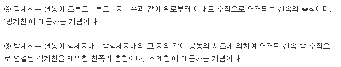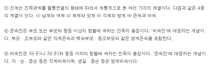 4. 존속친은 부모님이나 조부모님처럼 나보다 윗세대의 친족을 의미하고, 비속친은 자녀나 손자녀처럼 나의 아랫세대 친족을 말합니다. 존속과 비속을 구분해두면 가족 관계를 더 명확히 이해할 수 있어요.