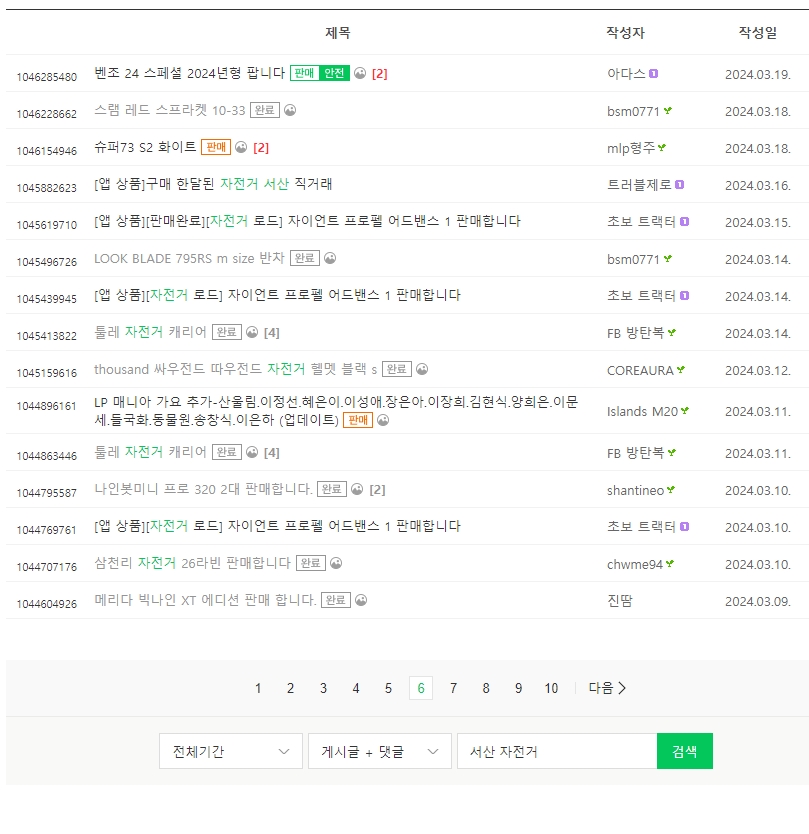 6. 다만 일부 사이트는 검색 결과가 제대로 필터링되지 않아서, 원하는 지역명과 상품명을 함께 넣어도 첫 화면에서는 관련 매물이 안 뜨는 경우가 있습니다. 이럴 때는 검색 페이지를 두어 장 이상 넘겨보는 게 필수죠. 자전거 판매 게시물이 여러 페이지에 걸쳐 나뉘어 있을 수도 있고, 게시글 제목에 지역명이 정확히 들어가지 않은 탓에 검색에 잘 걸리지 않는 사례도 종종 보입니다. 약간은 수고스럽지만, 발품을 팔면 그만큼 알짜 매물을 발견할 가능성도 높아지니 참고해보세요.