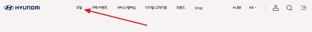 2. 홈페이지 상단의 ‘모델’ 메뉴를 클릭하면 전체 차량 목록이 나옵니다. 차량 종류별로 분류되어 있어서 세단, SUV, 전기차 등 원하는 카테고리를 바로 찾기 좋아요.