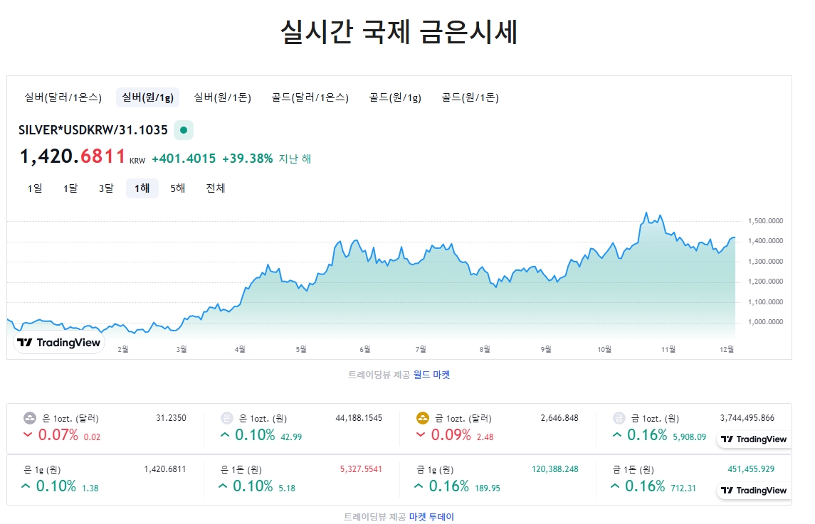 은 1그램당 가격은 1,420.6811원으로, 지난 해 대비 무려 39.38% 상승한 수치입니다. 이 그래프를 보면 은 가격이 꾸준히 상승해왔다는 점을 확인할 수 있어, 장기적인 투자 전략 수립에 도움을 줍니다.