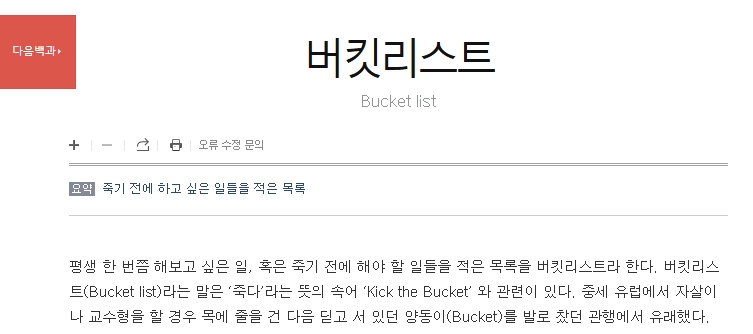 버킷리스트에 대한 정확한 정의나 어원, 다양한 해석은 공신력 있는 자료를 통해 확인하는 게 가장 좋아요. 특히 다음백과에서는 관용구 유래부터 현대적 의미까지 꼼꼼히 정리되어 있어서 참고하기 딱입니다.