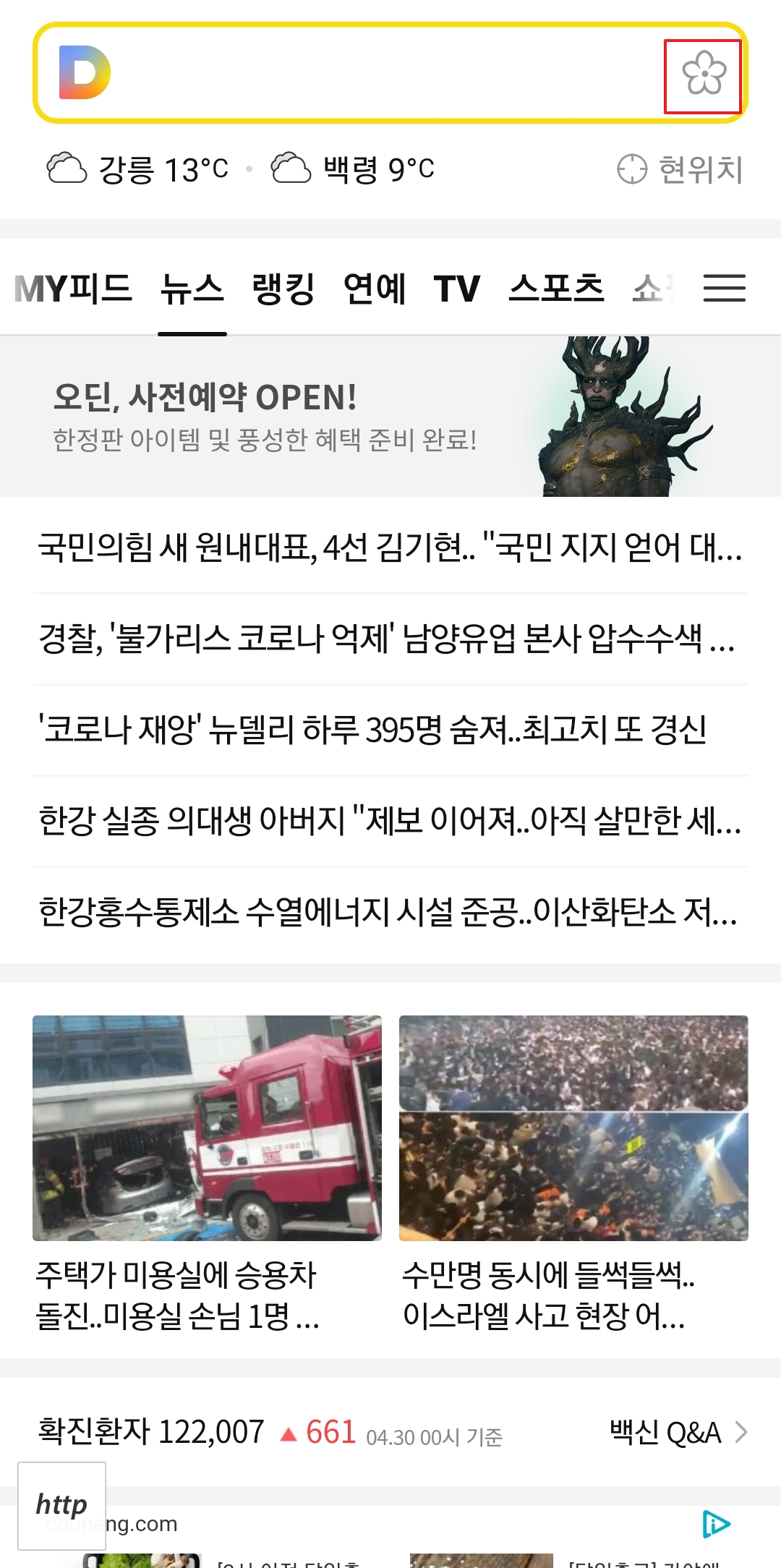 플레이스토어에서 '다음' 어플을 검색하여 다운로드하고 설치한 뒤 실행합니다. 검색 기능은 홈페이지가 아닌 어플에서만 제공되므로, 앱을 통해 사용해야 합니다.