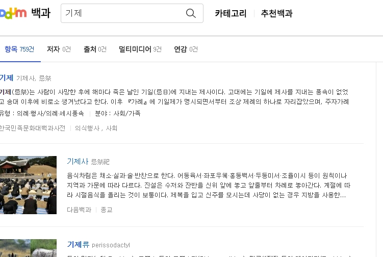 4. 다음백과에서 '기제'를 검색하면 사람이 사망한 후 매년 기일에 제사를 지낸다는 정의를 확인할 수 있습니다.