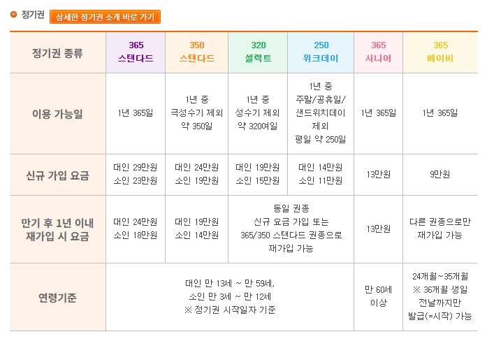 6. 에버랜드는 1일권 외에도 정기권을 판매하고 있습니다. 연간 이용이 가능한 전용권 외에도 특정 요일(평일 전용)만 가능한 합리적인 가격의 정기권도 마련되어 있어 방문 횟수가 많은 분들에게 경제적입니다.