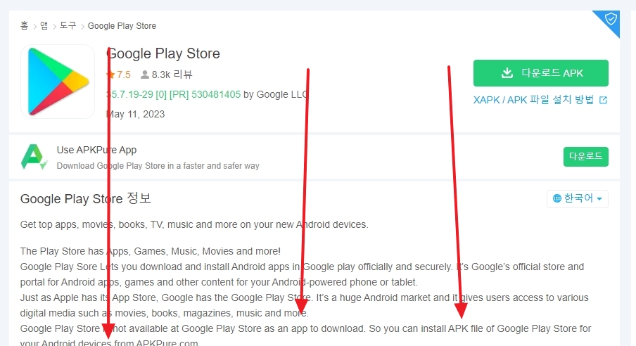 7. 다운로드 후, 플레이스토어 아이콘을 클릭하면 추가적인 설명 페이지로 이동할 수도 있습니다. 이곳에서는 앱에 대한 추가 정보와 다운로드 옵션을 확인할 수 있어요. 특히 구버전 다운로드가 필요할 때 유용한 정보가 포함되어 있습니다.