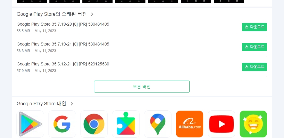 8. 화면을 아래로 스크롤하면 이전 버전 다운로드 옵션을 확인할 수 있습니다. 최신 버전이 기기와 호환되지 않을 경우, 구버전을 선택하여 설치하는 것도 좋은 방법입니다. 항상 자신에게 맞는 버전을 선택하세요!