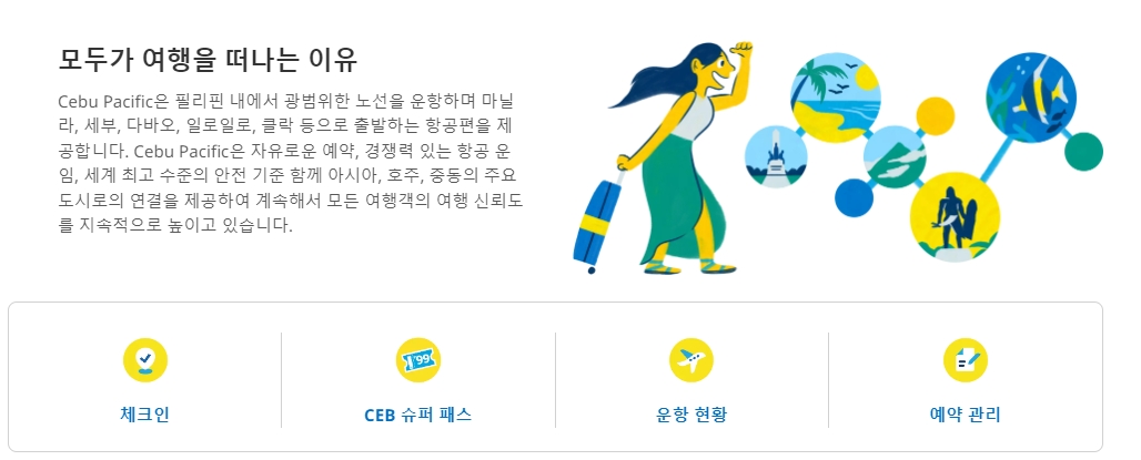 3. 이 항공사는 필리핀뿐만 아니라 아시아, 호주, 중동 등으로의 다양한 노선을 제공합니다. 마닐라, 세부 등 주요 도시는 물론, 다낭, 마카오, 타이베이 등의 인기 목적지로도 저렴한 가격에 이동할 수 있어 여행객들에게 매력적인 선택지가 됩니다. 또한, 예약 시스템이 직관적이라 초보 여행자들도 쉽게 이용할 수 있습니다.