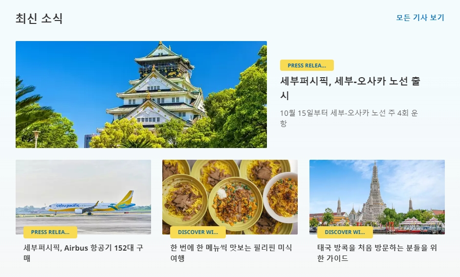 5. 세부퍼시픽항공은 단순히 항공편만 제공하는 것이 아니라, 여행 관련 유용한 정보도 제공합니다. 예를 들어, 세부에서 새롭게 운항을 시작한 오사카 노선은 일본 여행을 계획하는 이들에게 큰 매력을 더합니다. 또한, 필리핀 내 다양한 문화를 탐험하고, 현지 음식을 경험할 수 있는 팁도 홈페이지에서 확인 가능합니다.