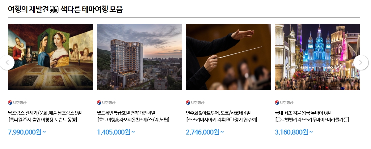 홈페이지의 할인 항공 예약 시스템도 정말 편리하게 잘 되어 있어요. 한진관광은 대한항공과 아주 긴밀한 관계를 맺고 있어서, 특별한 가격의 항공권을 자주 제공하곤 합니다. 그래서 내가 원하는 날짜와 시간대에 맞춰서 생각보다 저렴하게 항공권을 예약할 수 있는 기회를 잡을 수 있죠.