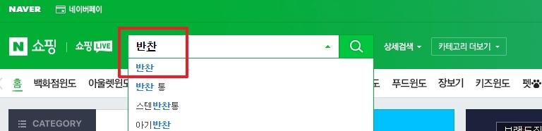 가장 먼저, 새로운 반찬 종류 100가지 아이디어를 얻기 위해 포털 사이트에서 네이버 쇼핑으로 들어가 줍니다. 꼭 여기가 아니더라도 쿠팡이나 다른 대형 온라인 쇼핑몰처럼 다양한 판매자들이 모여있는 곳이라면 어디든지 괜찮습니다.