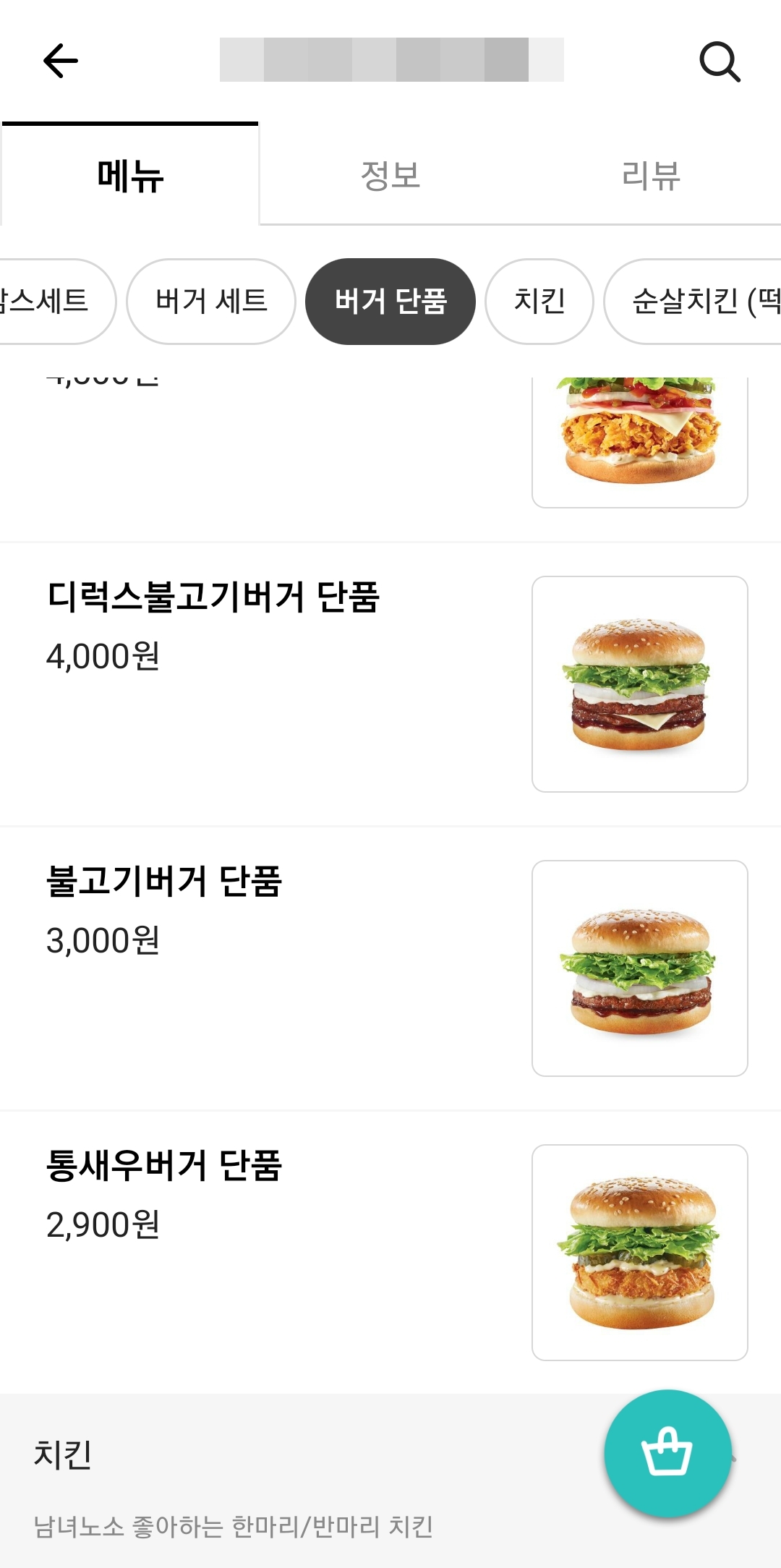 그리고 내슈빌핫통다리치킨처럼 버거 메뉴와 이름이 같은 치킨 메뉴도 있는데, 매운맛을 좋아하시는 분들이 많이 찾는다고 합니다. 맵다는 후기가 많아서 아직 도전해보지는 못했지만, 언젠가 꼭 한번 먹어보고 싶은 메뉴 중 하나입니다.