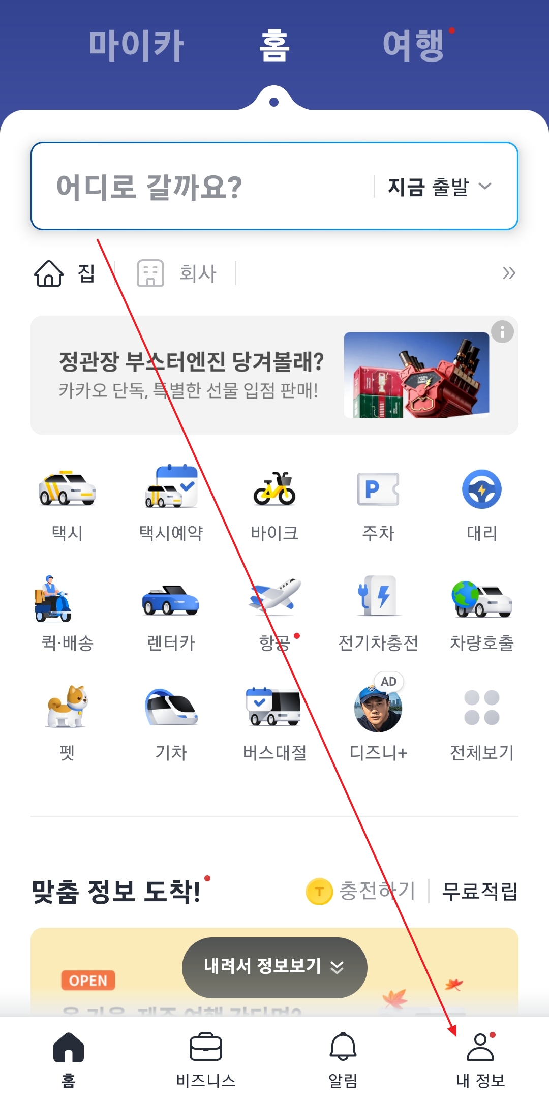 숨겨져 있는 카카오티 고객센터 전화번호를 찾기 위해서는 먼저 앱을 실행한 뒤, 화면 오른쪽 아래에 보이는 '내정보' 아이콘을 눌러주세요. 이곳에서 계정 정보와 관련된 다양한 메뉴를 한눈에 확인할 수 있습니다.