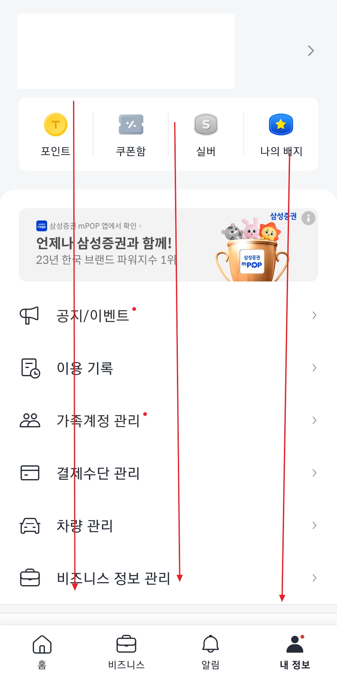 내정보 화면으로 들어오셨다면, 화면을 맨 아래까지 내려주세요. 우리가 찾아야 할 중요한 정보는 페이지의 가장 마지막 부분에 위치해 있답니다. 천천히 스크롤하여 맨 끝까지 이동하는 것이 중요합니다.