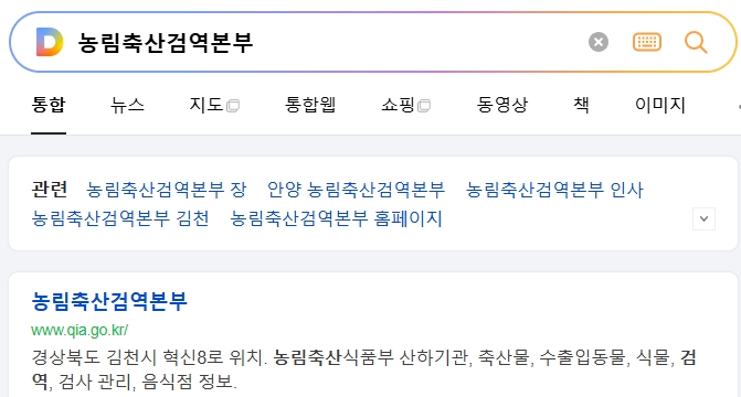 1. 농림축산검역본부 홈페이지로 들어갑니다. 농림축산검역본부는 경상북도 김천시 혁신8로에 위치해 있으며, 농림축산식품부 산하기관으로서 축산물, 수출입 동물, 식물의 검역 및 검사 관리, 음식점 정보 제공 등의 역할을 수행합니다. 이 기관은 국내외 동물 방역에 관한 다양한 정보를 제공하고 있습니다.
