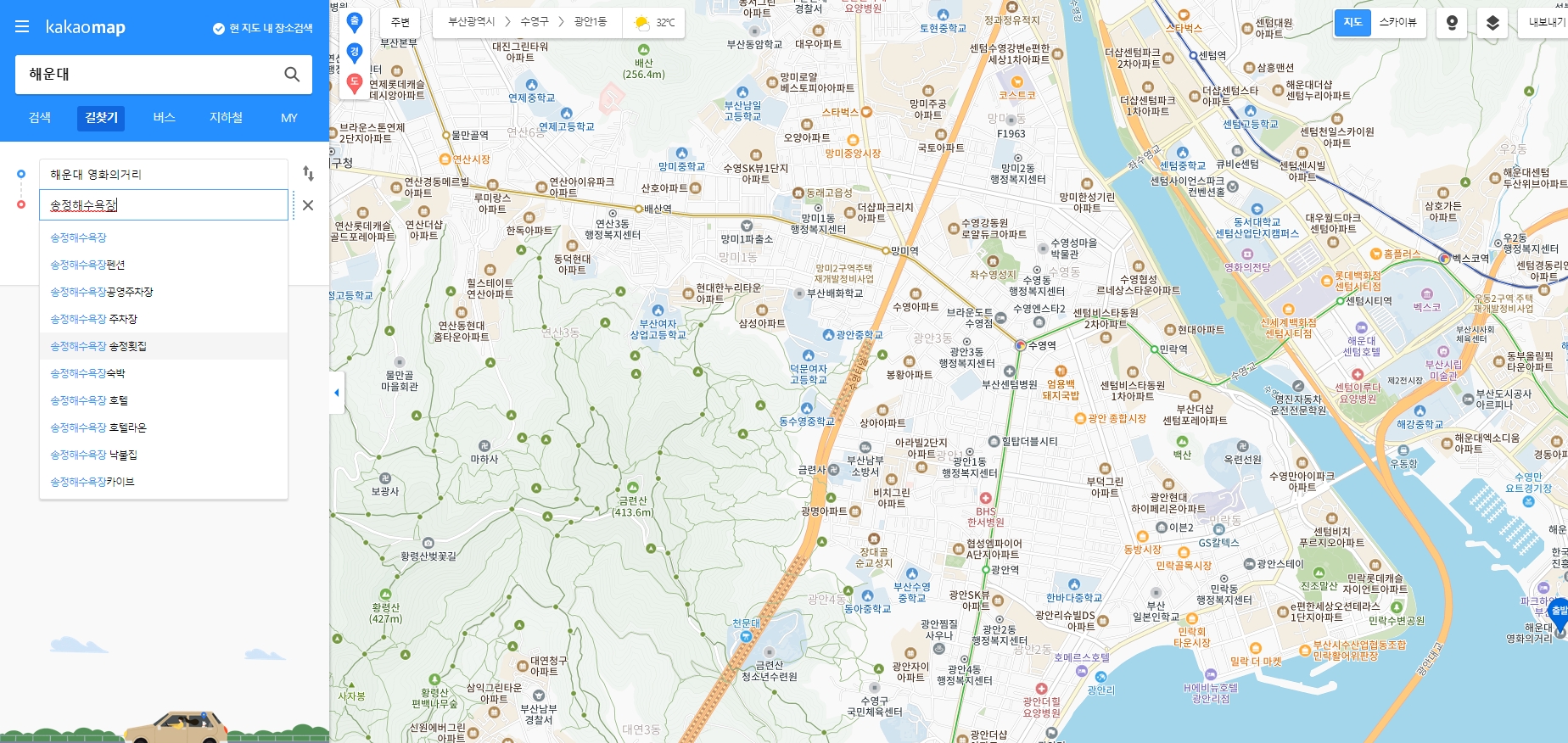 이 검색창에 내가 출발하려는 장소나 도착하고 싶은 장소의 이름, 주소 등을 입력하면 곧바로 정확한 위치를 지도 위에 표시해주어 다음 단계를 진행할 수 있습니다. 길 찾기의 가장 기본이 되는 첫 단계입니다.