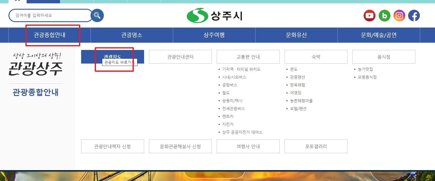 상주 전체의 관광 명소를 한눈에 보고 싶으시다면, 상단 메뉴의 '관광종합안내'에서 '관광지도'를 선택해 보세요. 지도를 통해 각 명소의 위치를 파악할 수 있어 효율적인 여행 동선을 짜는 데 큰 도움이 됩니다.