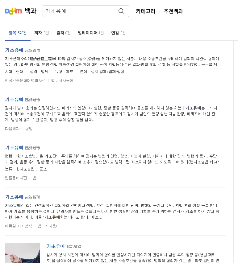 2. 기소유예를 검색합니다. 검색 결과로 기소유예의 정의와 개념이 표시되며, 이는 검사가 형사 사건에서 공소를 제기하지 않고 피의자에게 유예 처분을 내리는 제도를 의미합니다. 기소유예는 범죄가 인정되지만 범인의 연령, 환경, 성행, 피해자와의 관계, 범행의 동기 및 후속 정황 등을 종합적으로 고려하여 다시 한 번 재기의 기회를 주기 위해 적용됩니다.