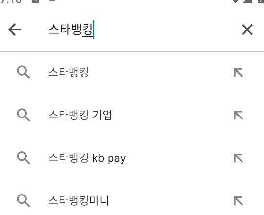 자동완성으로 'kb스타뱅킹'이나 'kb국민은행 스타뱅킹'이 뜰 수도 있는데, 그냥 '스타뱅킹' 네 글자만 쳐도 대부분 맨 위에 나와요. 괜히 길게 칠 필요 없어요.