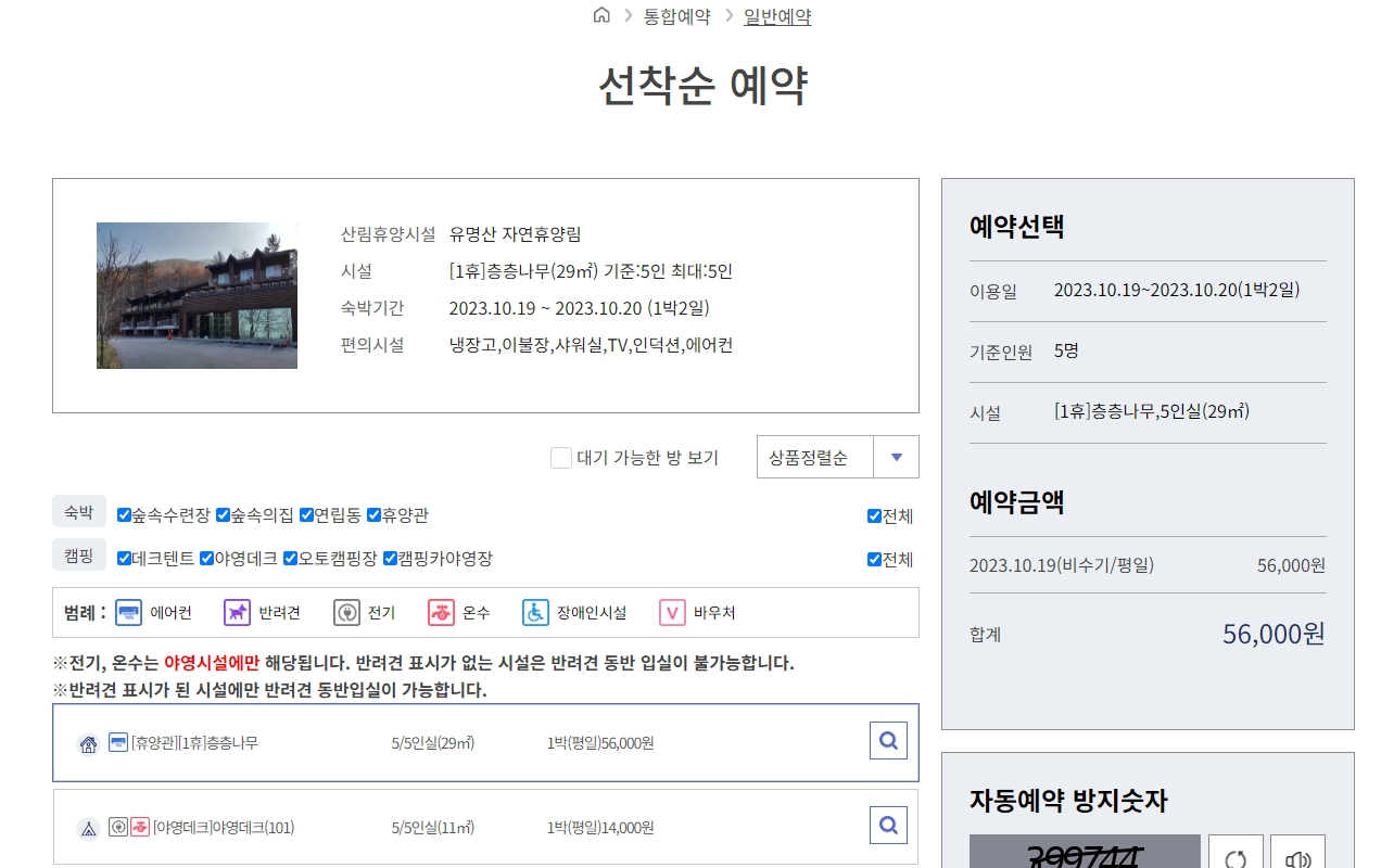 가끔 '추첨신청'이랑 헷갈리시는 분들이 있는데, 그건 성수기나 주말처럼 경쟁이 치열한 날짜에만 해당돼요. 일반적인 평일이나 비수기 예약은 '일반예약'으로 하시는 게 맞습니다.