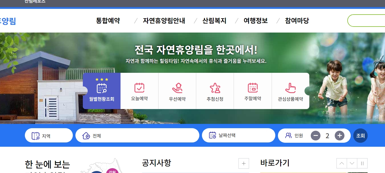 자연휴양림 예약정보시스템 홈페이지 (www.foresttrip.go.kr)