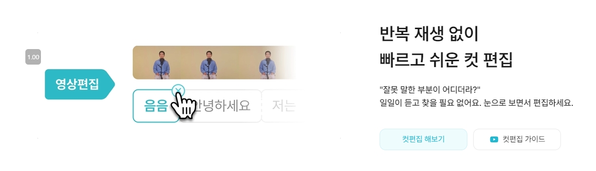 3. 반복 재생 없이도 빠르고 쉬운 컷 편집 기능을 제공합니다. 영상 속에서 잘못된 부분이나 필요 없는 내용을 텍스트로 확인하며 삭제하거나 수정할 수 있어 작업 효율을 높일 수 있습니다.